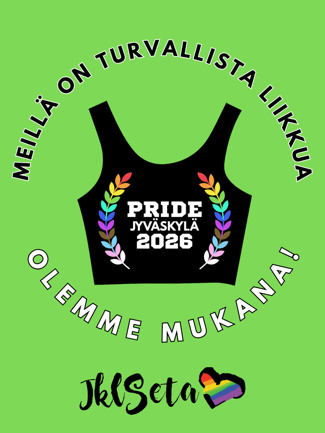 Olette myös tervetulleita tekemään itsenäistä sisältöä teeman tiimoilta, Priden aikaan ja ympäri vuoden. Toivomme että tägäätte tilimme (@jklseta) ja käytätte hashtageja #jklseta #jyvaskylapride ja #liikuntarauha